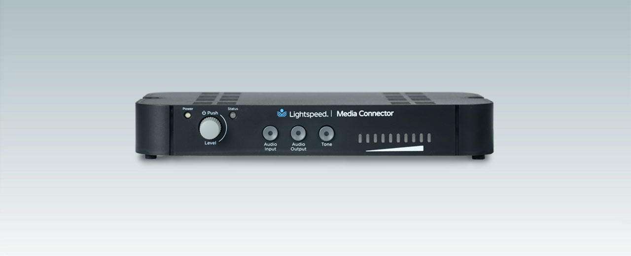 Integrate all classroom multimedia audio sources. Computers, panels, mobile devices, and more can be connected to the compact Media Connector which wirelessly transmits the signal to a Lightspeed audio system.
